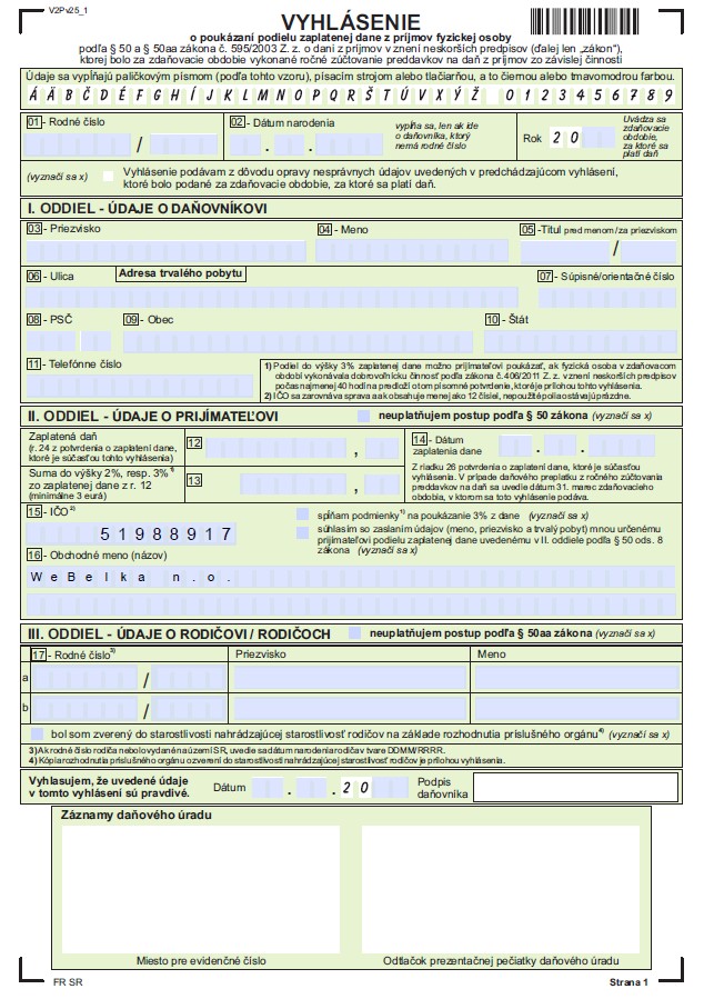 Aj tento rok môžete darovať 2% svojich daní na podporu tým, ktorí ju potrebujú.
