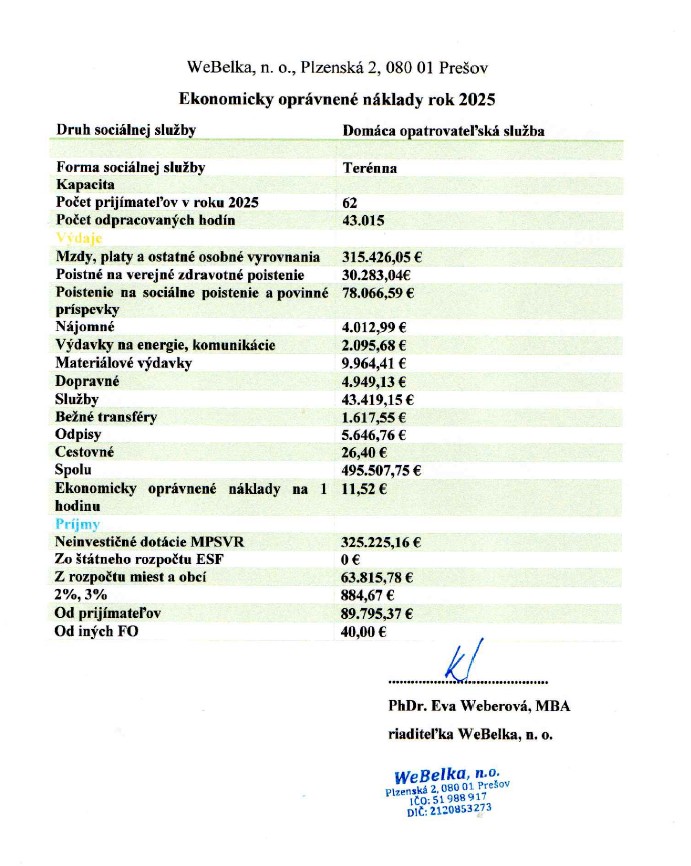 Cenník za opatrovateľské služby